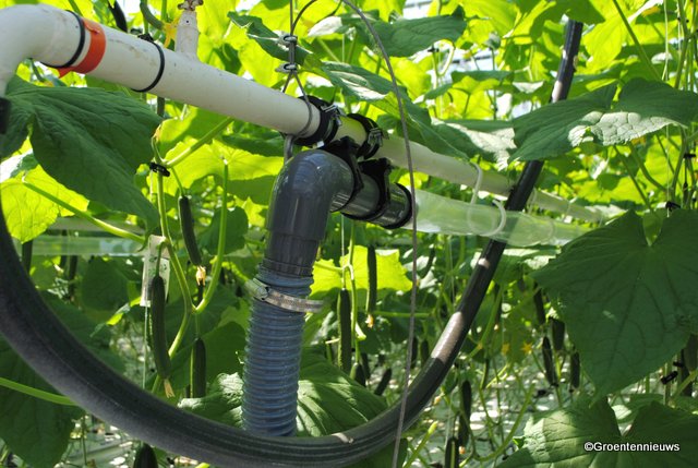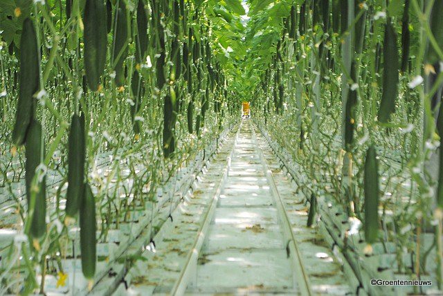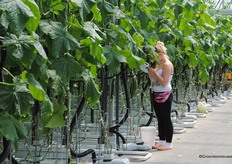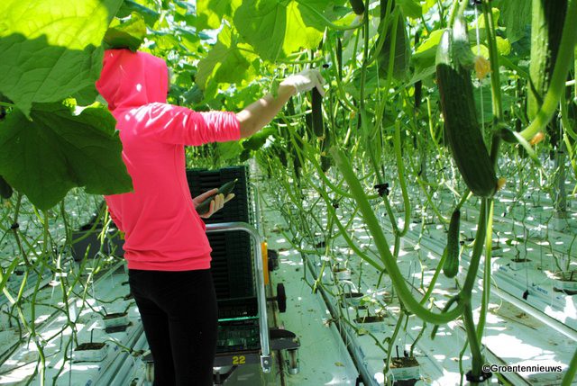 With the transport system, cucumbers automatically move to the packaging area without disturbing the tomatoes.