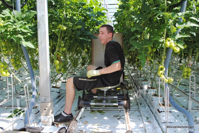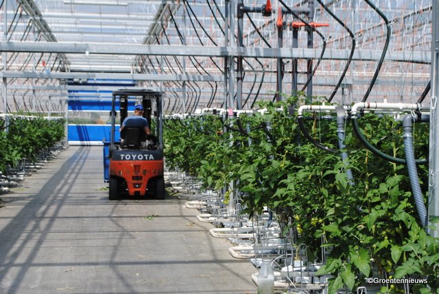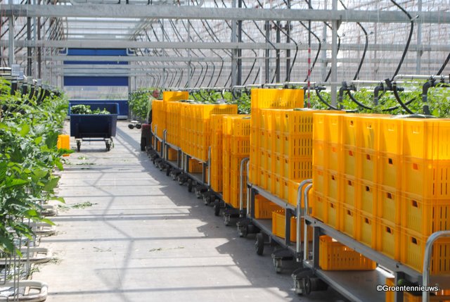 The transport system for the tomatoes was not yet in use. Now the harvest of tomatoes is in full swing.