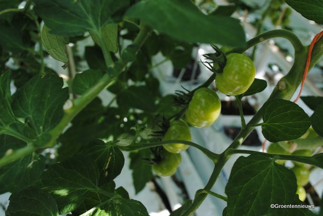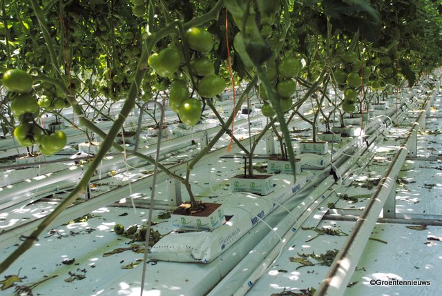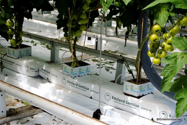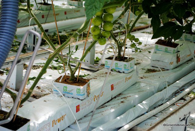 The tomatoes are on grow bags of Kleeschulte and Dutch Plantin, but other substrates are being tested.