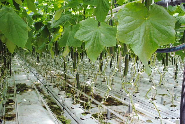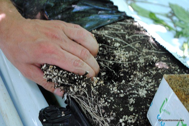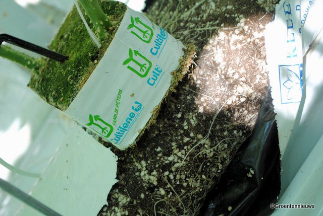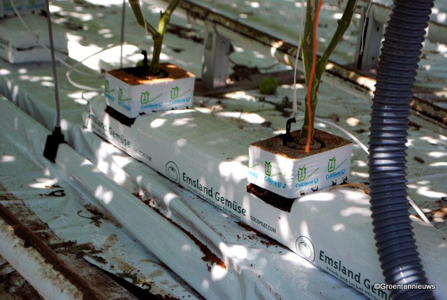 The crop is partly grown on substrates by Knauf Perlite / Kleeschulte. Another part is on coir fiber by Dutch Plantin.