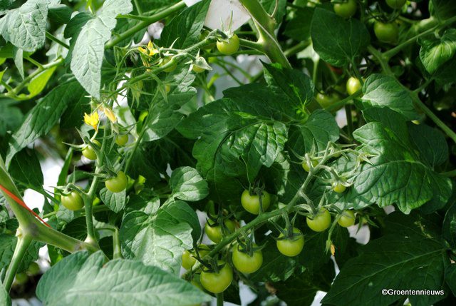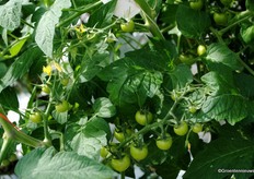 The system and hooks are still visible between the cocktail tomatoes. A density of 4.6 bunch p / m is observed.