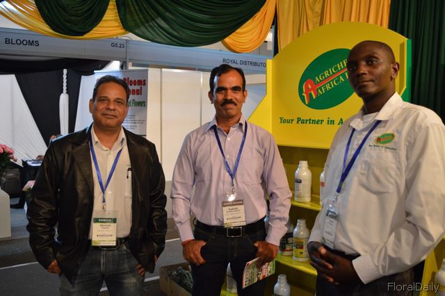 Shirish Ingale of Agrichem Africa Limited, grower Satish Kumar Kuravi fo Enkasti Flower Growers, and Peter Muraya of Agrichem Africa Limited.