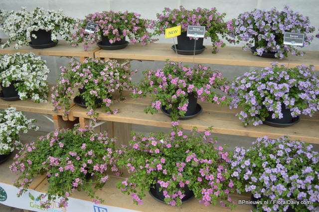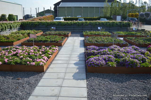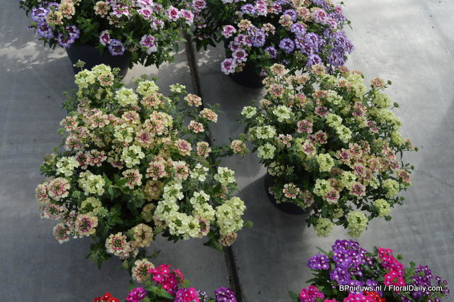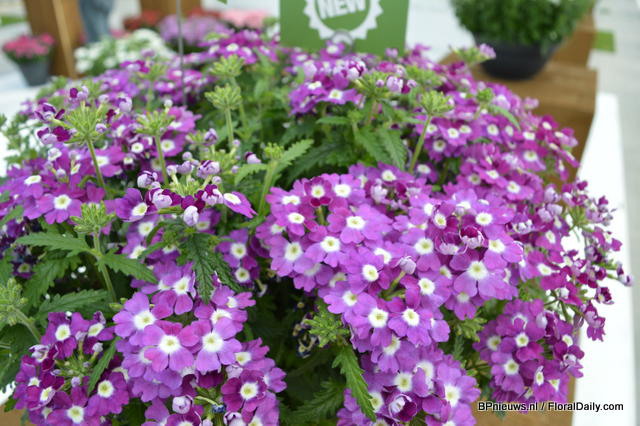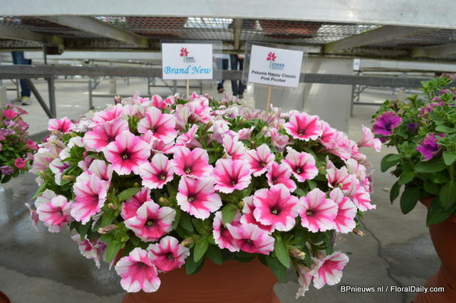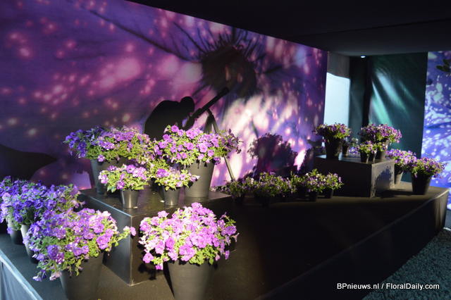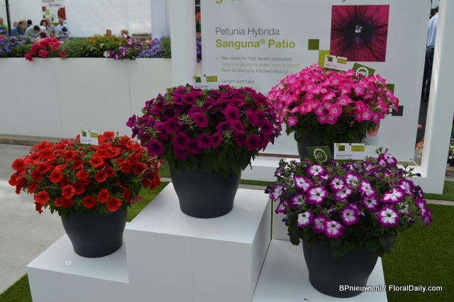 De Sanguna Patio was presented during the Flower Trials gepresenteerd in the colours Pink Morning en Twirl Purple.
