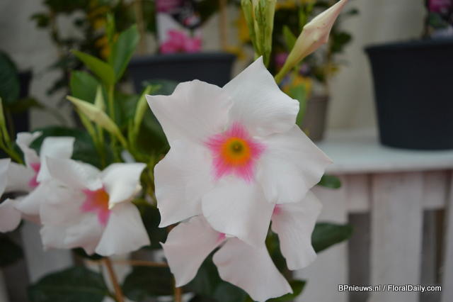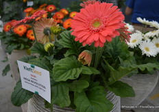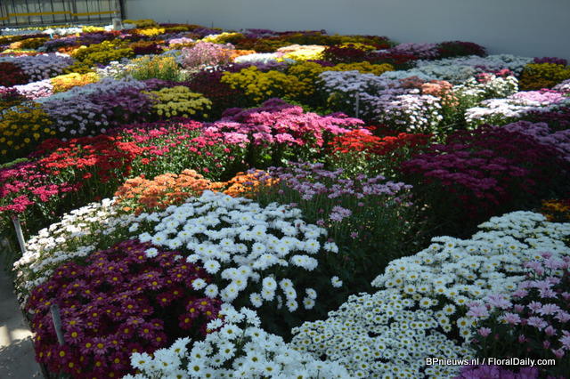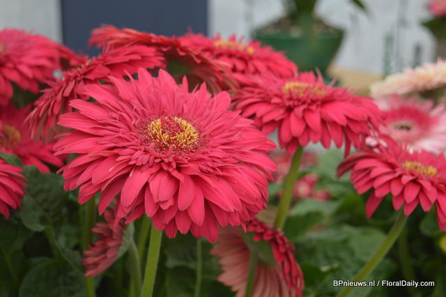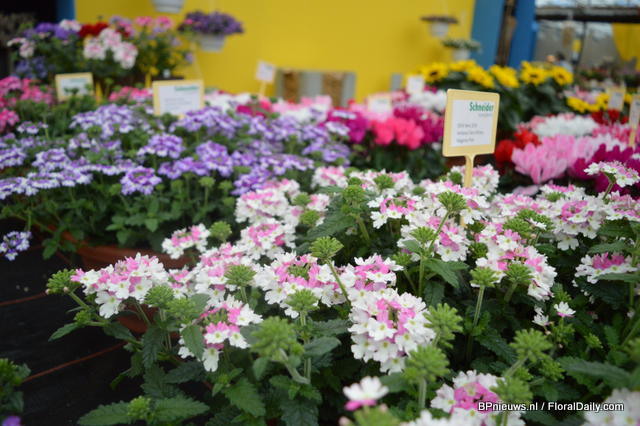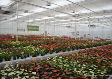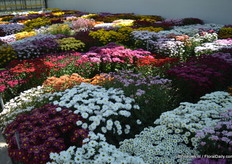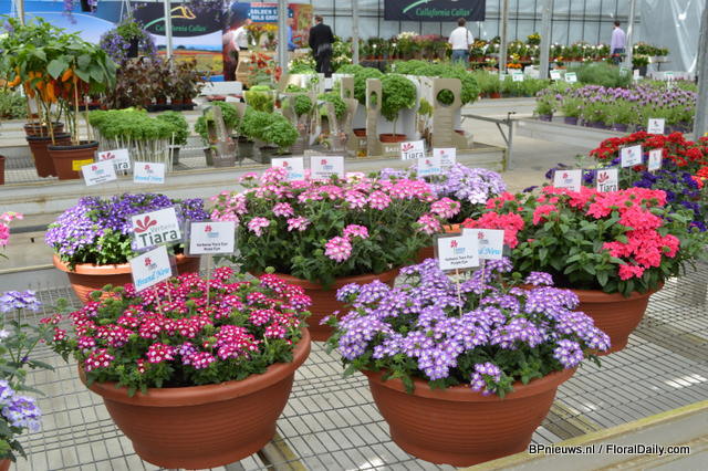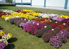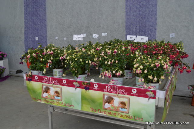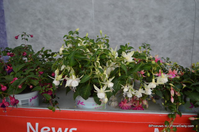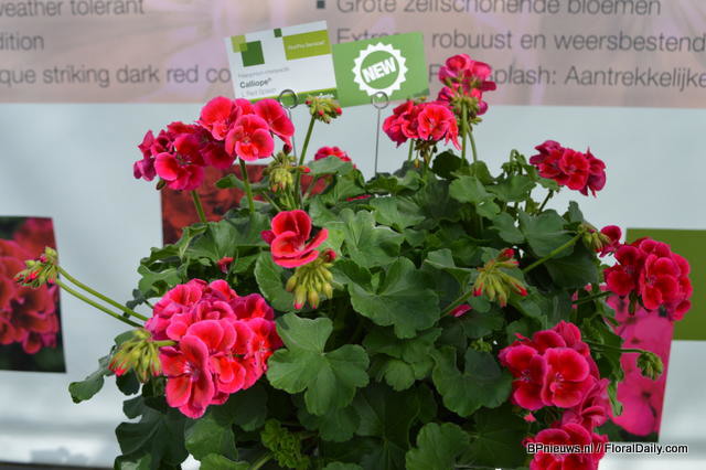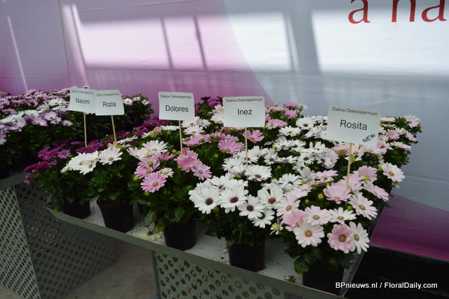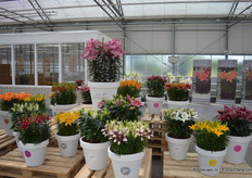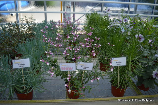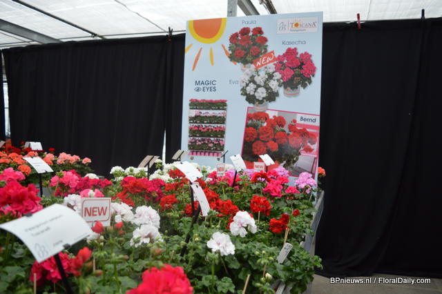 In the back: Emma Improved. (improvement of an existing variety, more smoother colour, stronger leaves) In front of the Emma: Lara Improved (improvement of an existing variety). In front: Paula (double flowerd, improvement of existing varietey, flowers earliers, better branching, is available for growers in January).