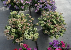 The Success petunia series of Benary consists of eight colours. It is round mounded and was introduced last year.