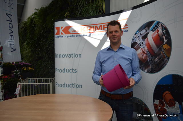 "Jacob Ballegooijen of Van Krimpen holding the DecoTainer. It is a decorative pot due to its simplicity. It is all in the name of this new container: Decoration and Container. The pot has been put on the market with the slogan: "Simply Beautiful"."