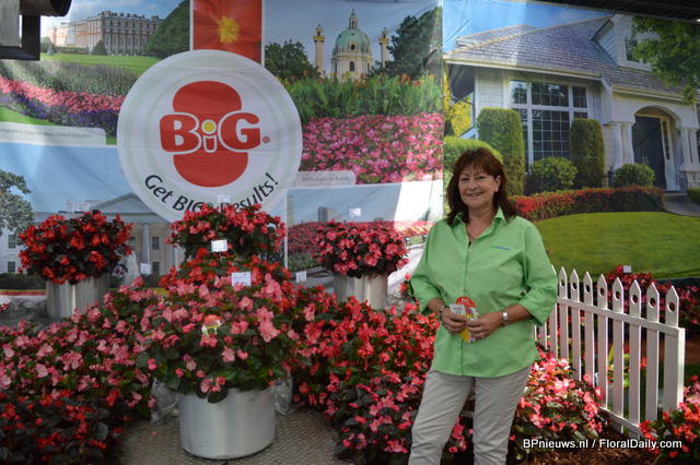 Gundula Wagner of Benary in front of the BIG begonia. This begonia is used all over the world for landscaping and is very popular in Russia and China. This year colour number five will be released: BIG Rose Green Leaf. The BIG series now offers five colours above glossy deep green or bronze foliage.