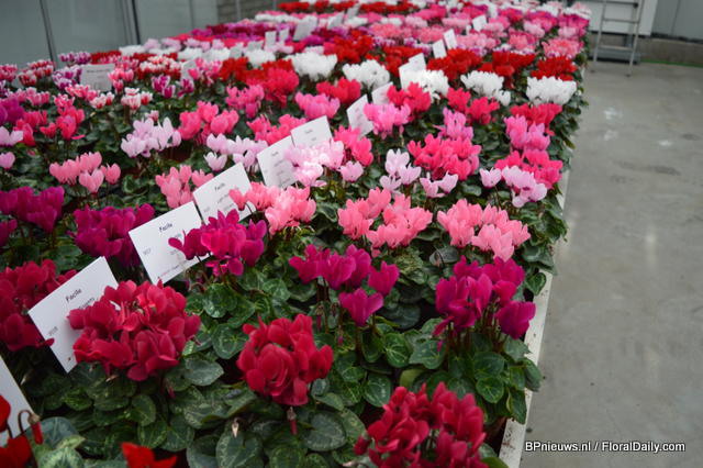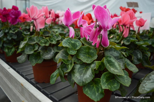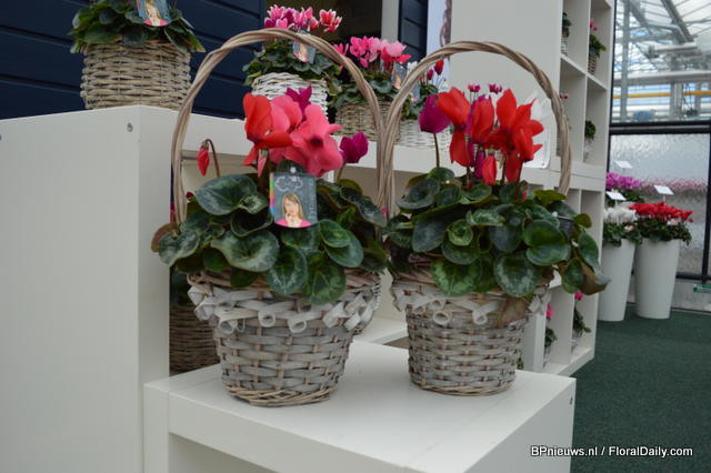 The Pythagoras is characterized by the use of 3 colors Cyclamen in one pot. The concept has been introduced a couple of years ago and is now cultivated by Eflorie, a Dutch grower.
