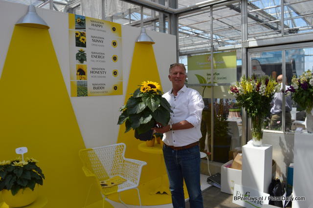 Evanthia was present with, among others, their Sunflower concept. This is a cooperation between 15 different growers and breeders of sunflowers. On the picture Luit Mazereeuw