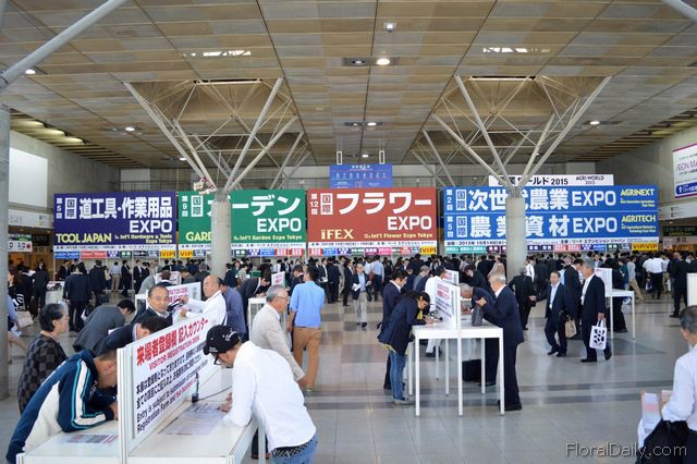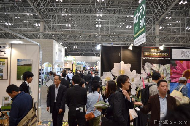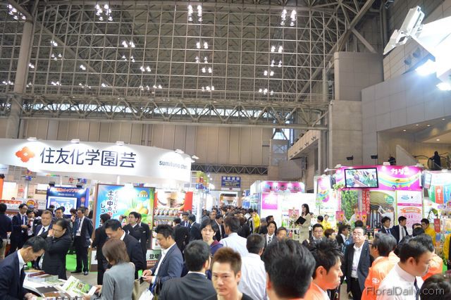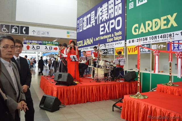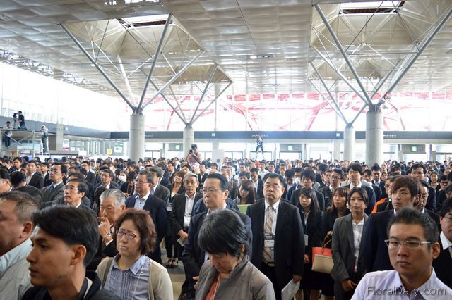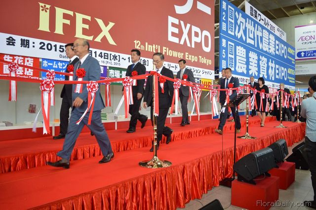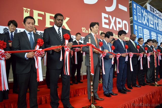 The Opening Ribbon Cutting Ceremony. The ribbon was cut by 46 professionals in the flower and agriculture industry, including the director of Reed Exhibitions, the Major of Chiba (where the exhibition is held), ambassadors from Kenya, Ethiopia, Thailand and Taiwan and large Japanese garden centers, flower auctions, supermarkets.