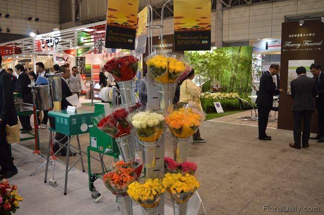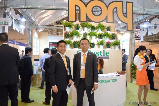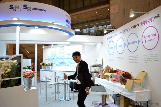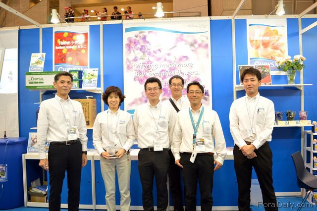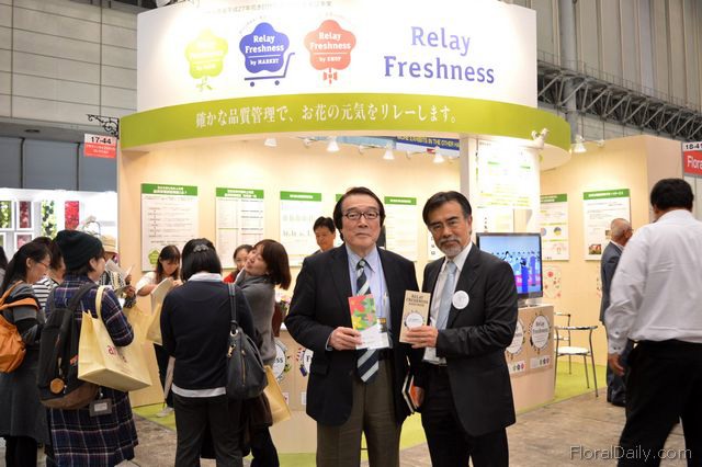 Yoshiyuki Matsushima of MPS Japan and Nobuya Kaishita of Chrysal standing in front of the Relay Fressness booth. This is an initiative of the Japan Floral Marketing Association (JFMA), Matsushima and Kaishita are both part of this association, alonng with 200 other companies. Their aim is to promote flowers in Japan. More on this later in FloralDaily.