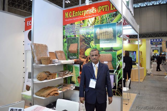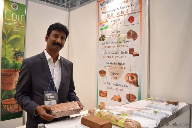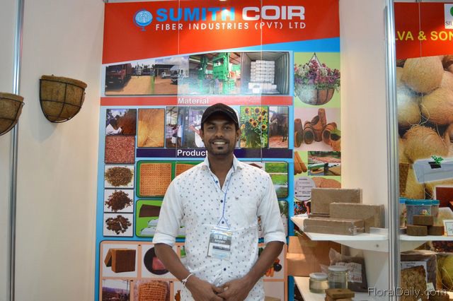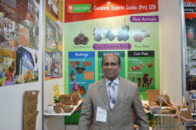 Sumith Rohana of Sumith Coir from Sri Lanka. He is showcasing his products at the Gardex, next to the IFEX.