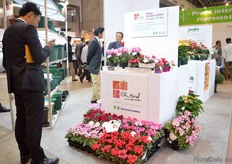 During the IFEX, we also visited a Japanese greenhouse, more on this later on FloralDaily. On the picture: Hideniko Ito of Ito greenhouse (the greenhouse they are standing before, more on this business later in FloralDaily) , Shoichi Oshio of FloralCrest Japan is a grower of Impatiens and Cyclamen. Lee Gee Young of Gyeonggi Agricultural Research and Extension, a breeder of Cactus in Korea and Hong Chul pf Hong Yi Green House, an ornamental grower in Korea. Oshio of FloralCrest was also showcasing his impatiens variety at the IFEX. This impatiens is bred by Danziger and kan stand a temperature of 41 Degrees Celsius. Besides that, he also grows Schoneveld Breeding Cyclamen in a 3,000 m2 sized greenhouse in Japan.