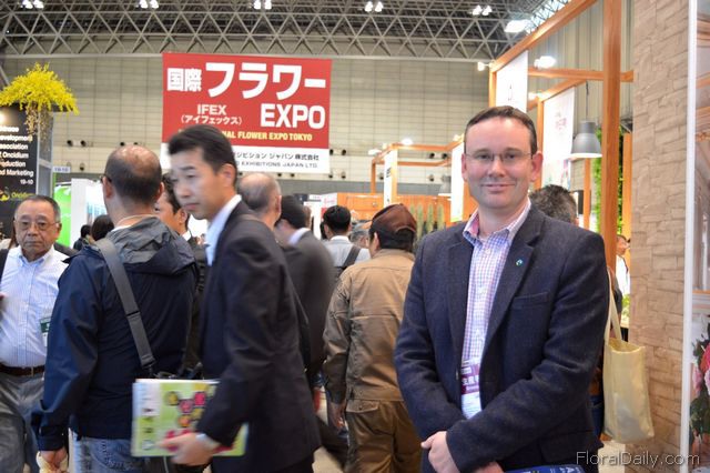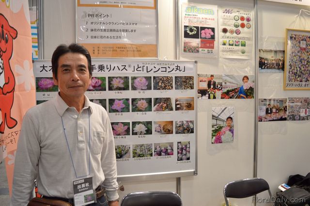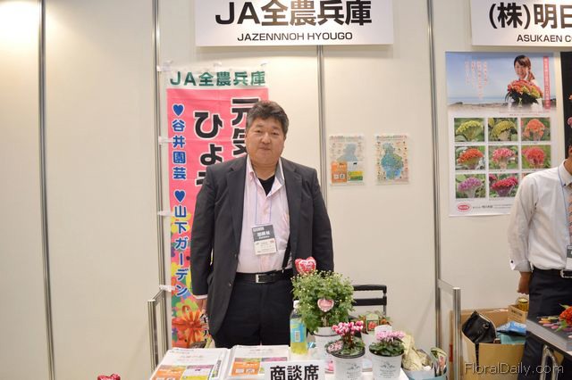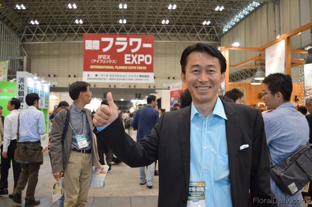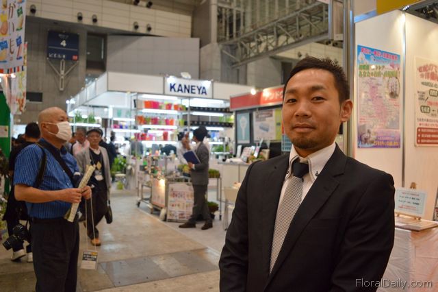 Fumiya Yamamoto of Japan Hort Business. They export cut flowers and Bonsai trees worldwide. He is visiting the show.