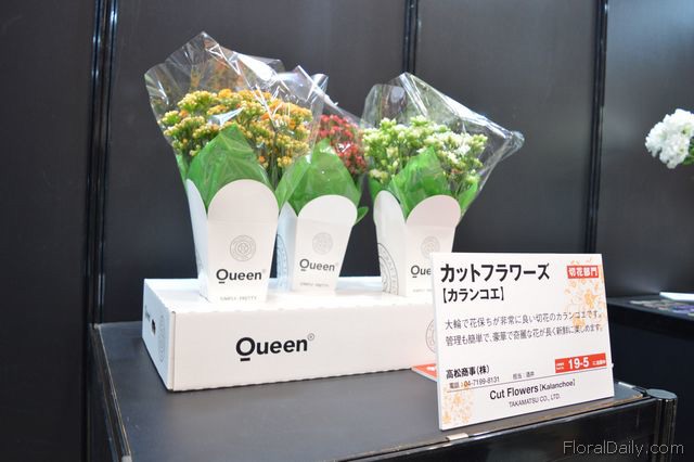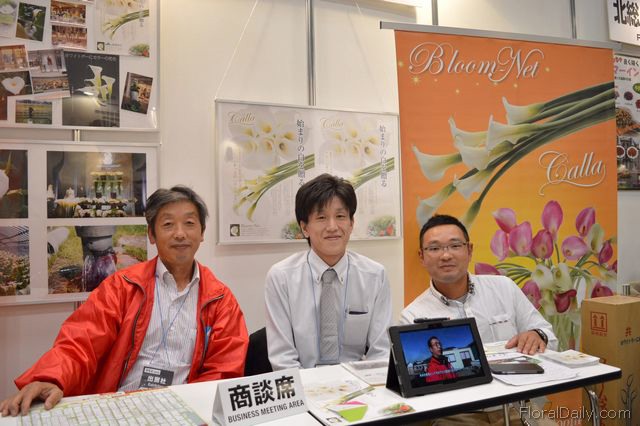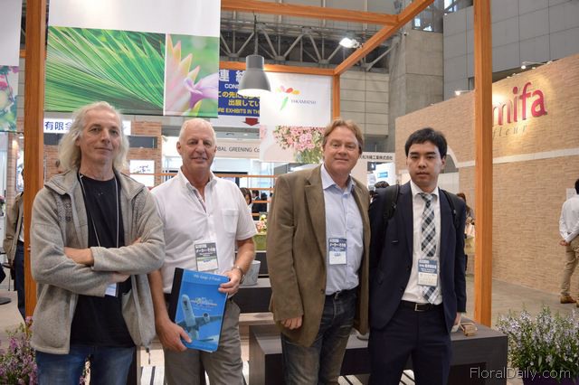 Hidemi and Takamatsu of Takamatsu and Torben Pedersen of Hasfarm Youngplants. Hasfarm Youngplants supplies cuttings to Takumatsu. They also supply the award winning (Runner up Flower Awards for cut flowers) Queen Kalanchoe cuttings. The Queen Kalanchoes are bred in Denmark by Knud Jepsen. One grower is already cultivating and selling the kalanchoe cut flowers. Currently, they are trailing the cut kalanchoes on different parts of Japan. More on this later in FloralDaily.