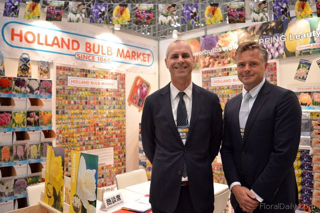 Roland Hillebrink and Joris van der Velden of Holland Bulb Market, a Dutch supplier of bulbs. They are at the show to look for export possibilities in Japan.