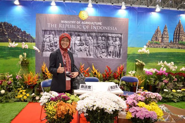 Ani Andayi of Kemeterian Pertanian Republik Indonesia. They are at the show to look for the possibilities for the export of Indonesian flowers. Two varieties of their Chrysanthemums are already approved. More on this later in FloralDaily.