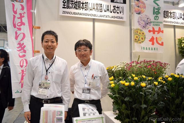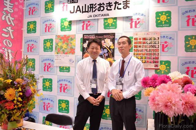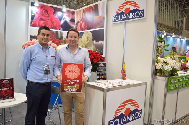 Carlos Sanchez and Carlos Nevada of Ecuanros. Currently the export a little bit of their roses to Japan. They are at the show to increase their exports Japan. They grow 120 rose varieties in a 80 ha sized greenhouse in Ecuador. At the show, they won the Best Overseas grower award for their Deep Rose Flower.