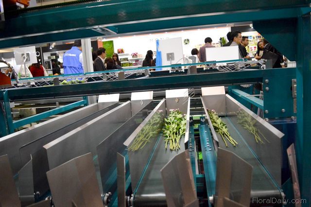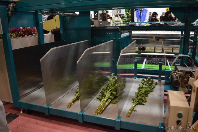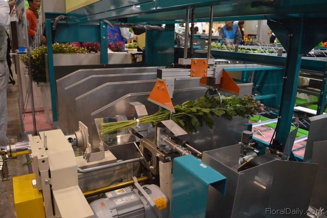 Bercomex machine imported by Impack. The machine cuts the flowers and removes the leaves.