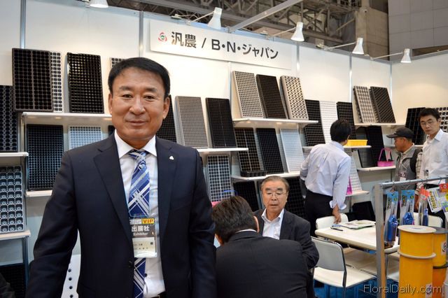 Kazuta Aoyama of Kaneya. Originally, Kaneya manufactures pots, but they also imports seeds and cuttings from European breeders, including Morel Diffusion, Vitro Plus, Selecta, Jardin, Florist Breeding and growing media from Pindstrup. The sell it to Japanese growers.