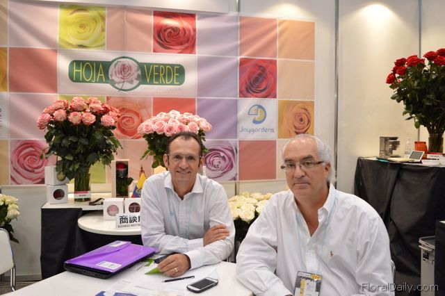 Eduardo Letort of Hoja verde and Diego Duenas of FlorMare. These Ecuadorian rose farms, together with Joy Gardens, are exhibiting at the show to find a new export market. They recognize their is big interest for the Ecuadorian roses.