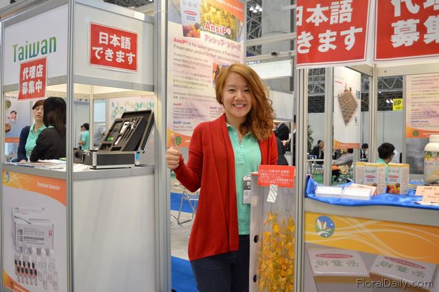 Cherry Lin of Lytone Enterprise. They are a producer of tablets and stickers that reduce the emission of ethylene and can almost double the shelf life of a flower. It enables growers to transport their flowers by sea, which is 40% cheaper. Already 80% of the Taiwanese Oncidium growers are using the tablets (Ansip) of Lytone Enterprise to extened the shelf live. More on this later in FloralDaily.