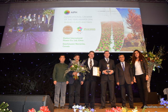 "Dashun International Flower and Dutchmaster Nurseries won the bronze award in the finished plants and trees category. The jury says about Dutchmaster Nurseries: "A growing family business that is set on the idea of providing its customers with what they want and being available for their clients throughout the year. An ambitious and dedicated team, actively innovating their products." The jury says about Dashun International Flower: "In the fast expanding Chinese market this company is not only very large and successful with impressive growth in a short time frame, its focus is on quality, which ensures it will be around for a long time to come. An example in innovation research, crop selection and quality products."