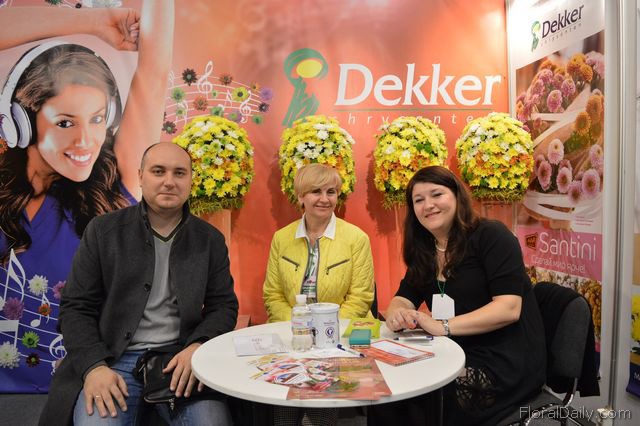 "Egidijus Kunigiskis and Ilja Dombrovsky with a visitor (on the left side on the photo). They export Dutch flowers and plants worldwide, including Ukraine. "It is a difficult market, but we should not complain. The market is improving, when comparing with the past years. For a while we haven't participated in the show, but this year we decided to exhibit again, and we are pleased. We met our clients and potential new clients. All in all the exhibition has a vivid and positive atmosphere", says Dombrovsky ."