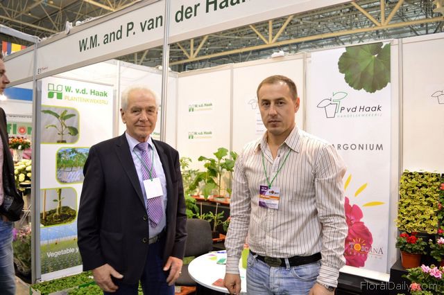 "Wim van der Haak of W. v.v. Haaak Plantenkwekerij and Vasil Lutsan, agent in RUssia of W. v.d. Haak and Pvd Haak. Since one year, Lutsan is their agent here in Ukraine. The are already supplying Ukraine with young plants, but they want to increase their volumes. "The market is on its way up again and therefore we are participating at this exhibition. It's our first time."