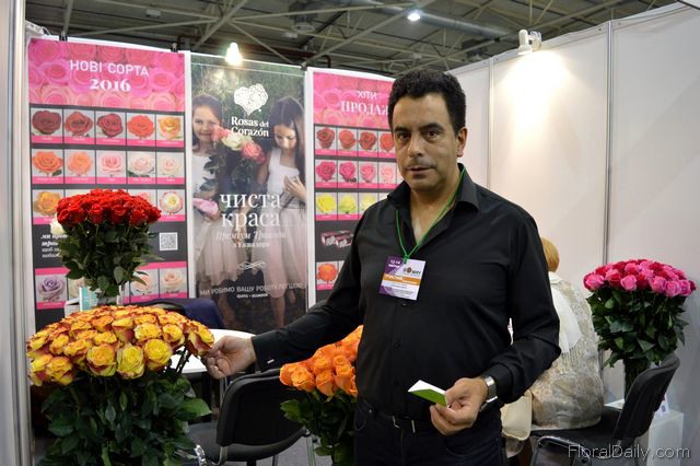 "Andrey of Camellia. This Ukraine company produces 12 varieties of single head and 9 varieties of spray roses in a 7ha sized and as he calls it Dutch like greenhouse. They also import roses from Holland, Colombia, Ecuador, Israel and Kenya. According to Andrey, the Ukrainians like the Ukraine grown roses as they have a high quality and are a bit cheaper. The spray roses are upcoming. "They are very popular at the moment", he says. Every year Camellia introduces 2 or 3 new varieties in the market. "And in order to guarantee high quality flowers, we have close lines with Dutch growers and we test all varieties extensively before we put them on the market", he says."