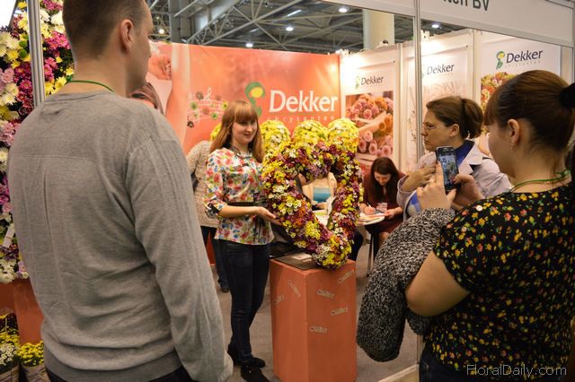 "Dmytro Derguz and Nonna Sirymak of Epicentr, a company with 55 DIY stores with large garden departments in Ukraine, and Warja Abrosimova of Dekker Chrysanten. Abrosimova represents the Dutch growers of Dekker Chrysanthemums. Over the last 3 to 4 years, the company did not participate in the show, but now they're back. "It is a good opportunity to maintain our relationships here in Ukraine. As we haven't been exhibiting at the show for a couple of years, we see that the visitors are attracted to some of our varieties that are on the market for several years now. They love new varieties and for them, these are new", says Abrosimova."