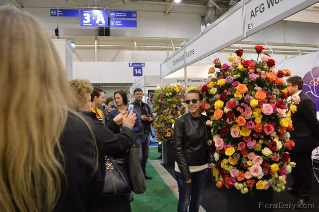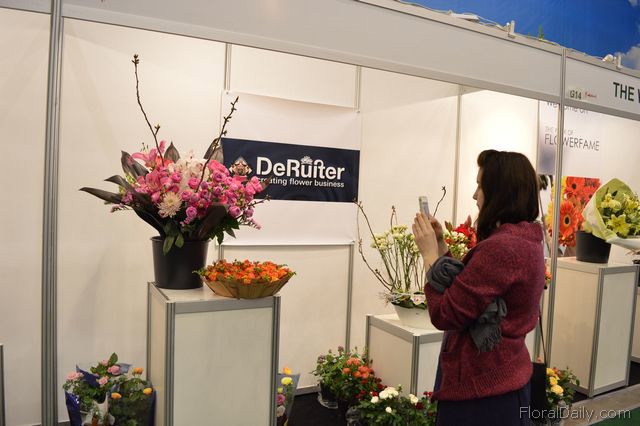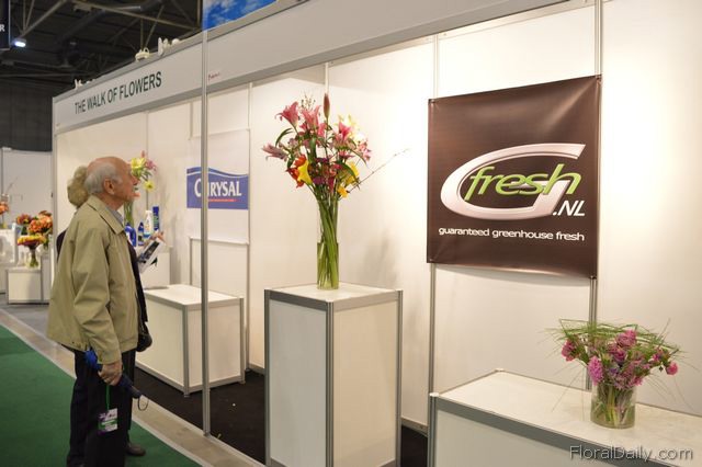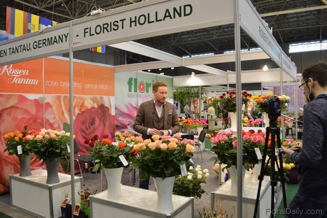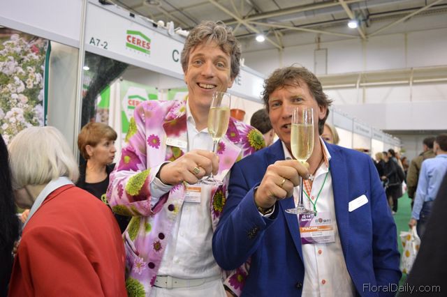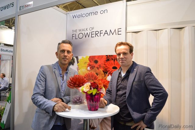 Mark Frank of Mark Frank and Peter van der Sluis of Blooming at the booth of Flowerfame. Flowerfame is a concept that supports companies that want to differentiate themselves at an exhibition. They can design the stand and promote the products in a different manner.