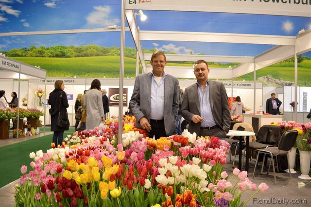"Robert Stoop of StoKolex and Arno Klijbroek of ATM, who represents StoKolex in Ukraine. They export Dutch flowerbulbs to Ukraine, but mainly to Poland and the Baltic countries. Especially, the sales of tulip flowerbulbs is increasing. "14 February and 8 March are the peak days. Around 80% of the flowers that are being sold at these days are tulips", says Stoop. They are participating at the show for the forth time. "Around two third of the people that are visiting our booth are existing customers and the remaining are new potential clients", says Stoop."