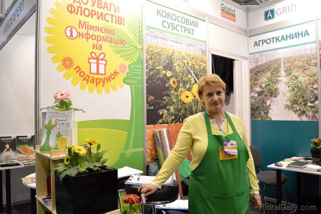 "Tetyana Lesina of Grand Meester. Grand Meester is a new brand that promotes coco peat. According to Lesina the visitors are very interested in growing flowers on coco peat. "These growers are looking for affordable ways to increase their yield", she says."