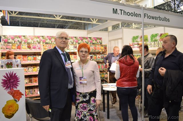 "J. Roozen and Valentyna Belozerova of M. Thoolen Flowerbulbs. This Dutch company supplies bulbs to Ukraine. For the first time, they are participating at this show. "We are mainly here to support our wholesaler. Here in Ukraine, we have had better years, but it is stable now."