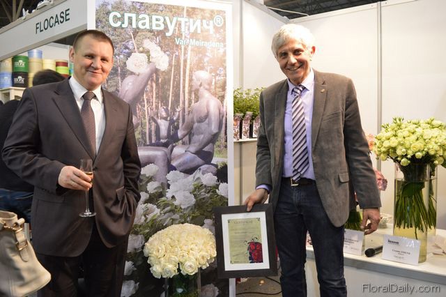 Tsinskyi Viacheslav, an Ukrainian grower of roses and Maarten Alkemade of Alkemade International. Alkemade imports Ukrainian flowers.