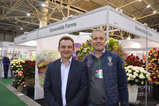 "Lukasz Zielinsky and Guido Zwart of Esmeralda Farms. The company supplies flowers to wholesalers in Ukraine and Dutch exporters. "We are here at the exhibition to promote our product and to raise the demand at the exporters side. Over the last years, we recognized a decrease in exports to Ukraine. Even though, the people remain optimistic. We see that our clients appreciate it that we are here again. In this way, we show them that we believe in the market", says Zwart."