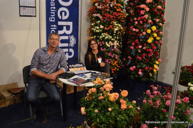 Arjen Vlasman from Royal DeRuiter, together with the representative of Polish rosegarden producer Wieczorek. The grower is a customer of De Ruiter and they presented on the fair together