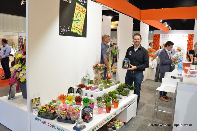 One of the adventurous Dutch growers on the fair to explore the Polish market, Jacco Huibers of Amigo Plants. Among others, Jacco was proud to present the X-Wish, a new concept involving an echeverria and chritmas items