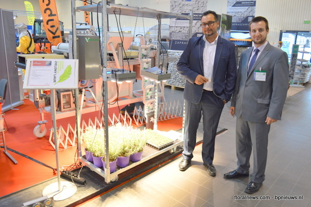 Tomasz Braczkowski, ower of Spectro Light and specialiced in manufacturing led lights for growers, is represening something special : in his words, this Xplosion 550 module is a true 'game changer'. On the right Michal Klobus from Royal Brinkman, distibutor of Tomasz' led modules.