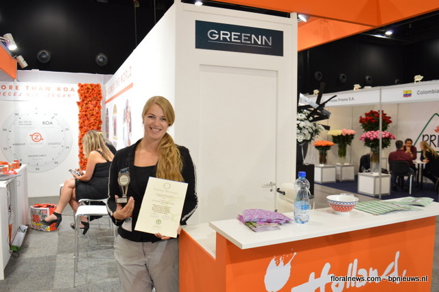 Evelien Rademakers of Greenn, organizor of the Dutch pavilion at the Expo. The company won a medal - a silver one - for 'best booth'