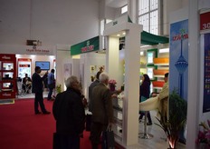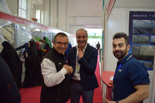 Michele Pavano and his colleague of P-TRE (on the left and on the right) visiting Vincenzo Russo of Vifra (in the middle) at the Vifra booth.