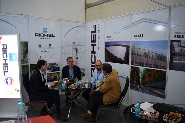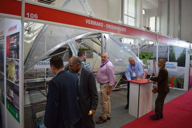 Jacques Maas and Peter Wicke from Belgium greenhouse manufacturer Vermako talking with visitors.