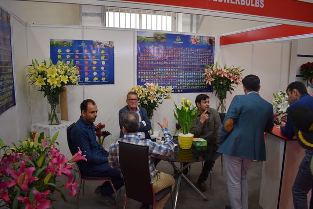 Bart Duijvesteijn of van den Bos Flowerbulbs talking with visitors.