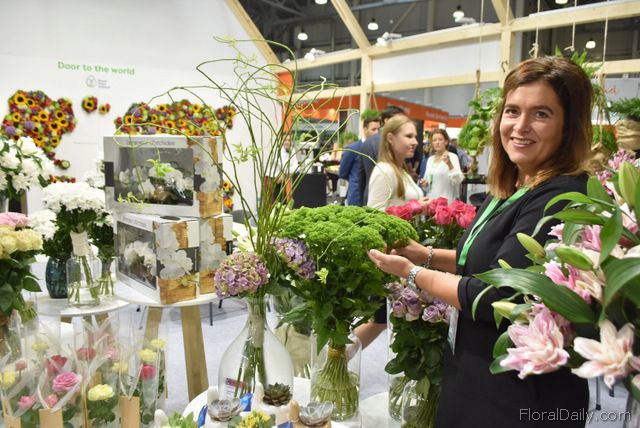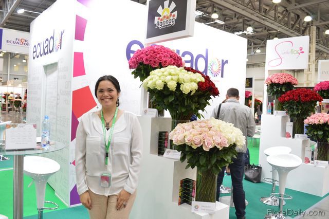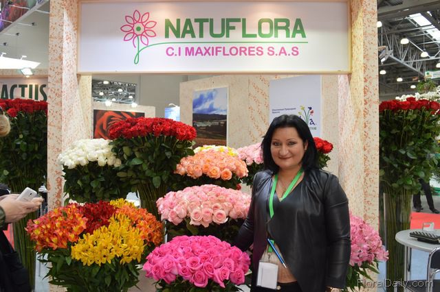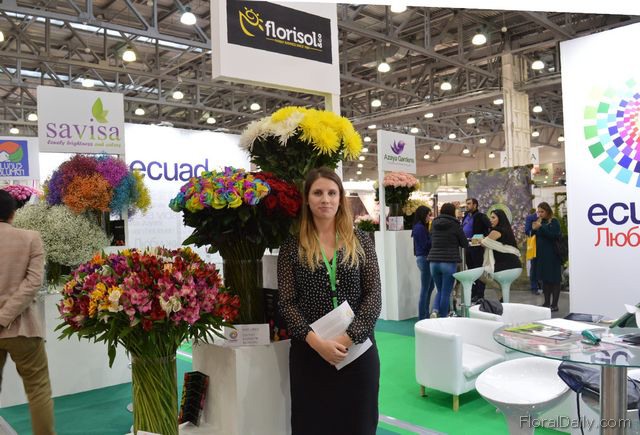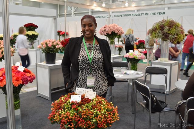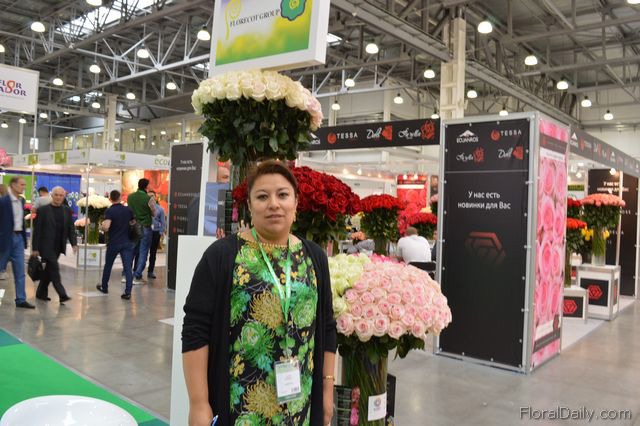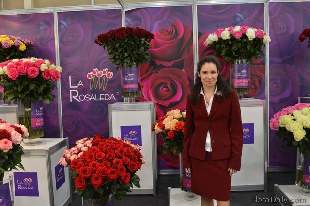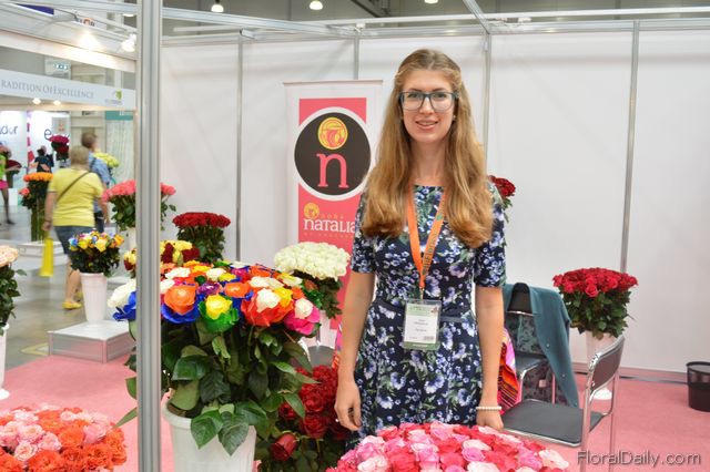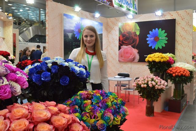 Vera Molostova of Agtogana. A flower grower from Ecuador showing this year (next to their regular assortment) ranoncules, anemones and painted and tinted rose. According to Molstova, these painted and tinted roses well demanded by the Russians.