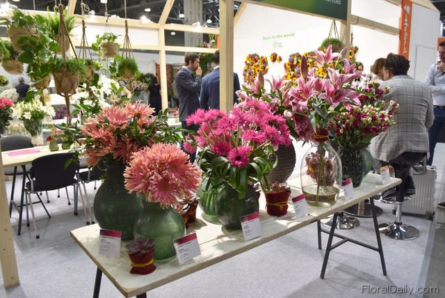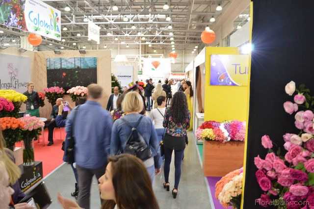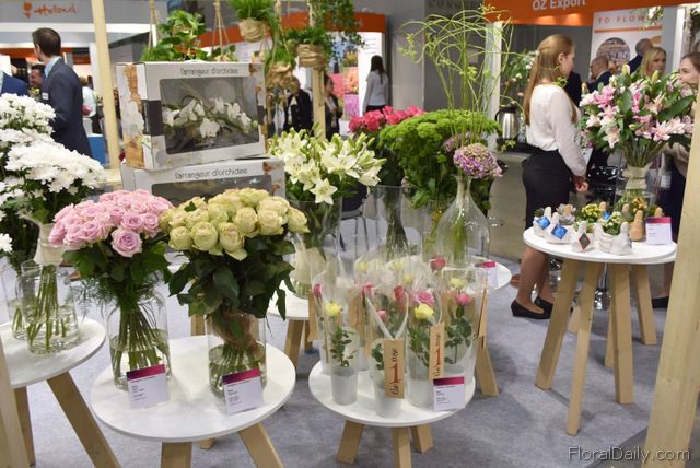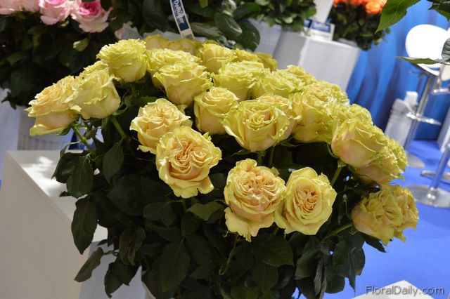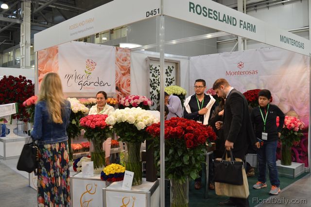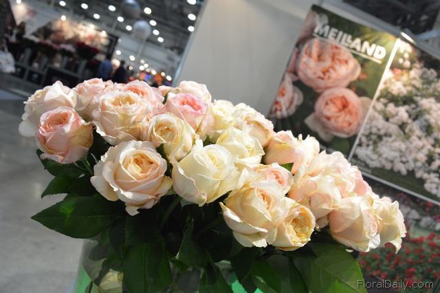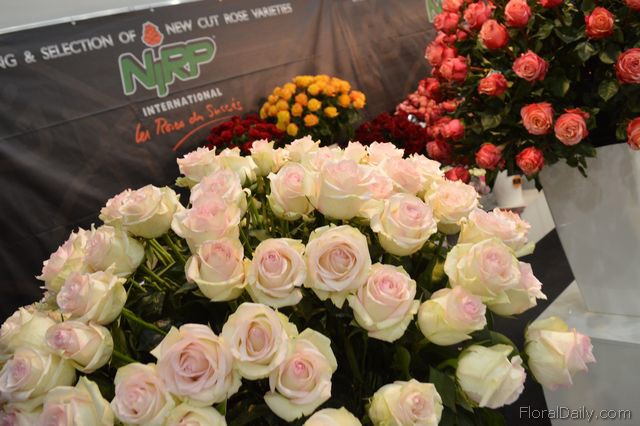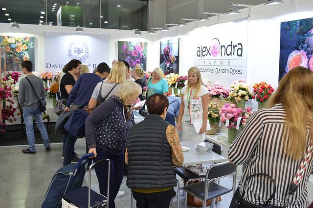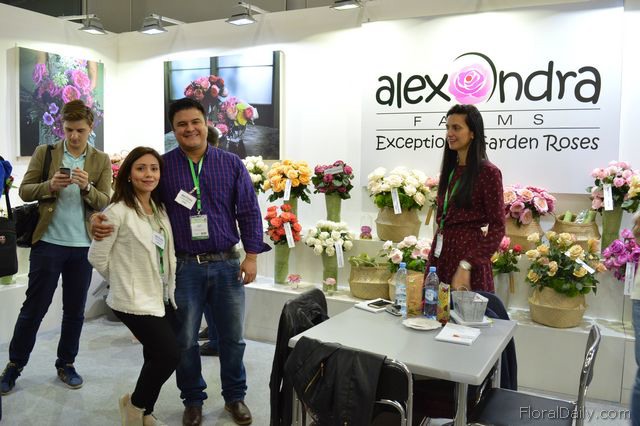 The booth of Colombian garden type rose grower Alexandra Farms was very crowded. Garden type roses seem to be an upcoming trend.