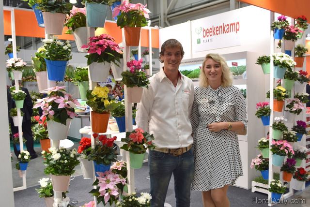 Koen van Koppen with colleague Tamara Elstgeest. Cyclamen, begonia’s and eenjarige planten like poinsettia’s are popular.