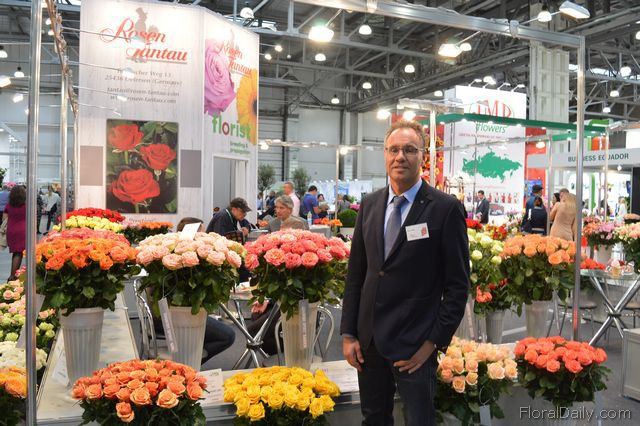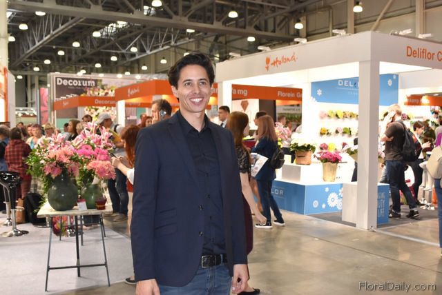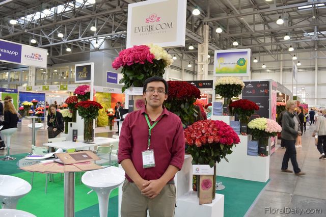 Frederico Santa Cruz of Everbloom. After skipping some years, they are back at the show this year. This Ecuadorian farm grows roses on 3,100 meters above sea level and specializes in the lengths 60-100cm. According to Santa Cruz, the Russian market is recovering.