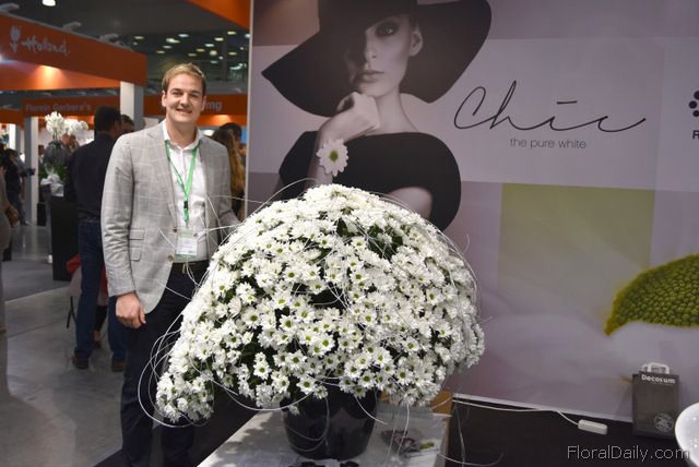 As one of the few companies Dekker Chrysanten didn’t just show their flowers, but also asked famous florists to create bouquets with it. That’s how they want to inspire the partners in the chain to combine santini’s with gras and roses, for example. “We want to show what else is possible with our product.”