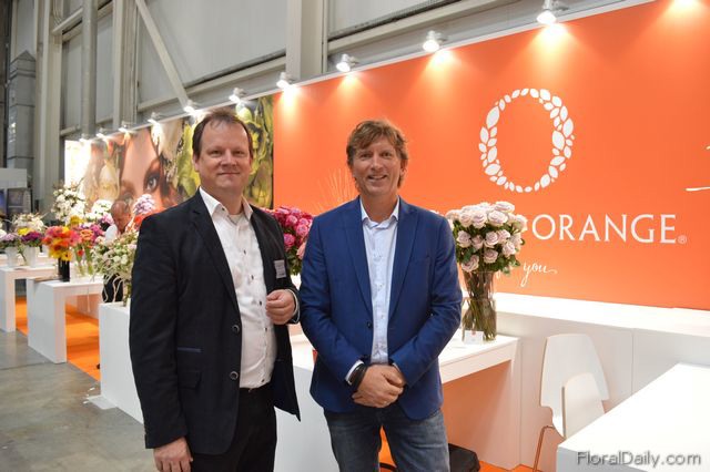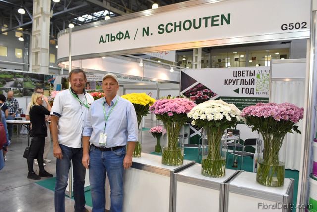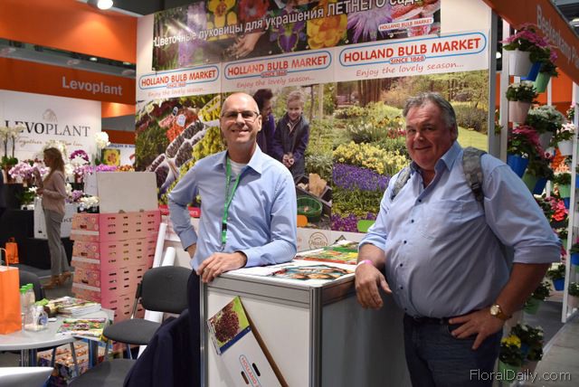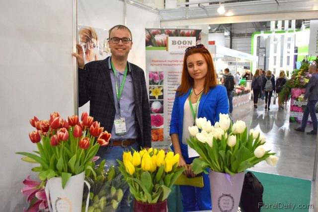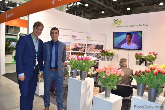 In the photo Eduard Sotnikov and Adam Piechowiak, representing N. Schouten. The company offers a broad assortment including organic and long-stemmed tulips.